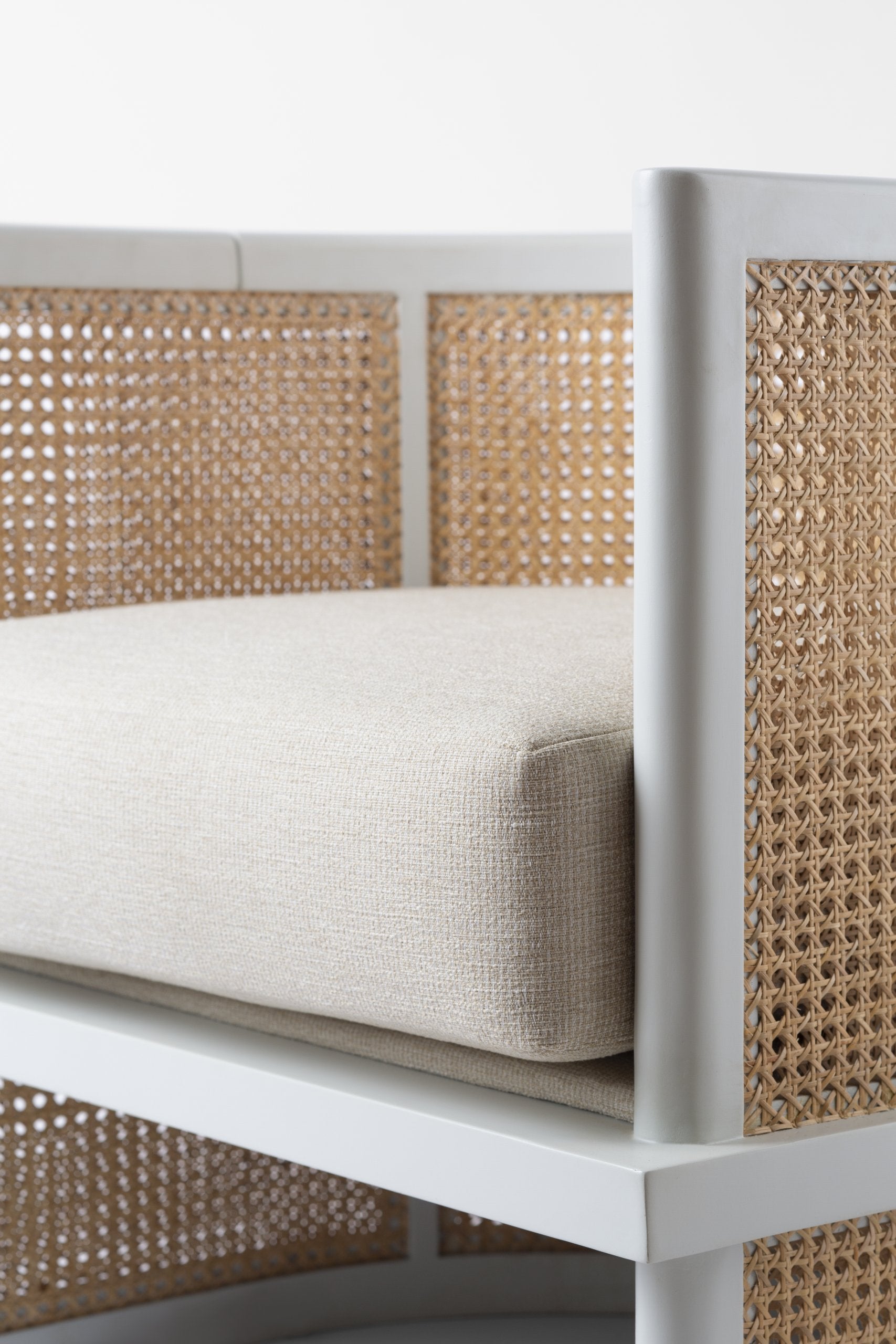 Our Cané armchair will take you back to classics but with a modern flair. It will add elegance and originality to your home with its iconic design. It is made from pine wood with luxurious upholstery and a sleek lacquer finish.
