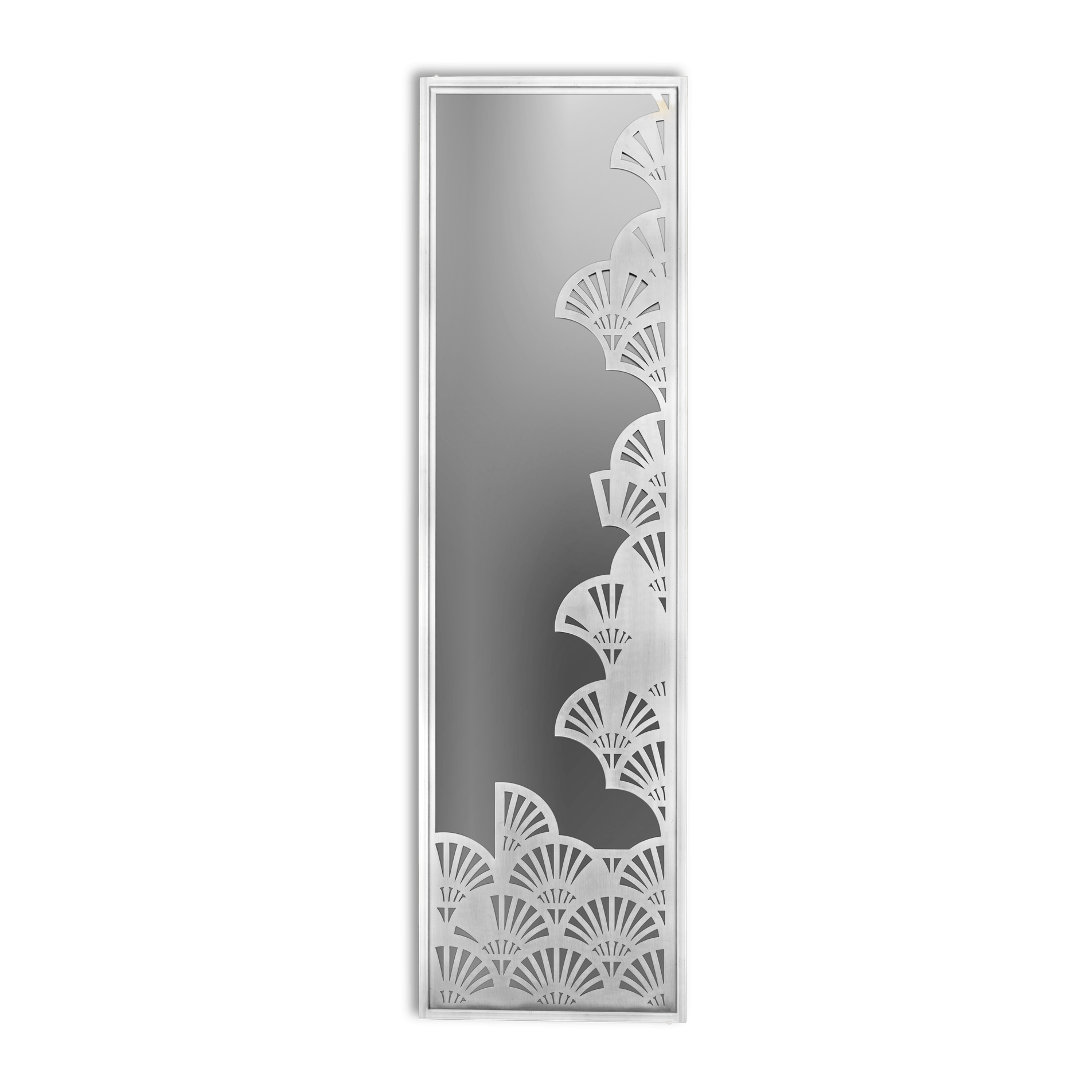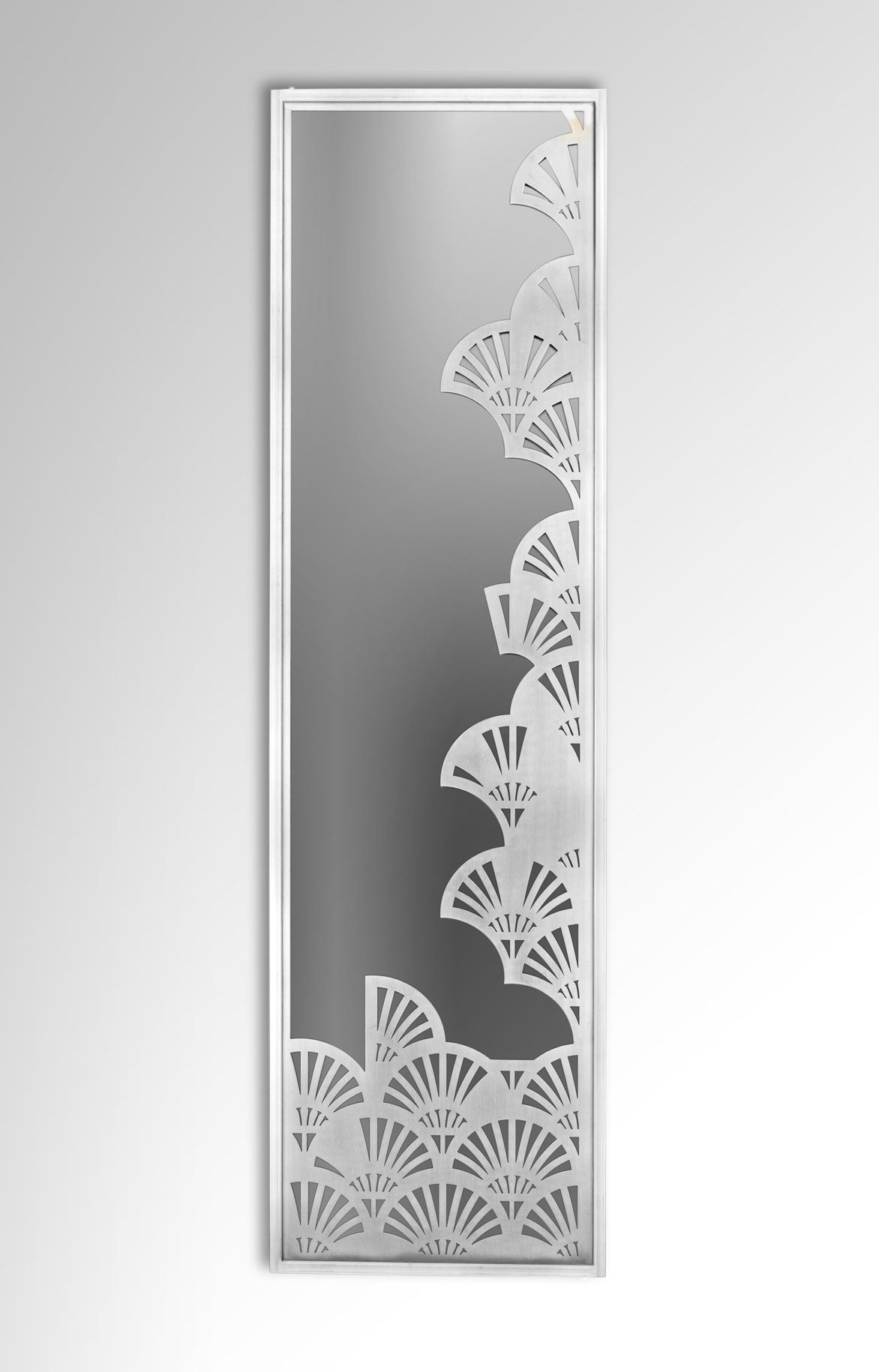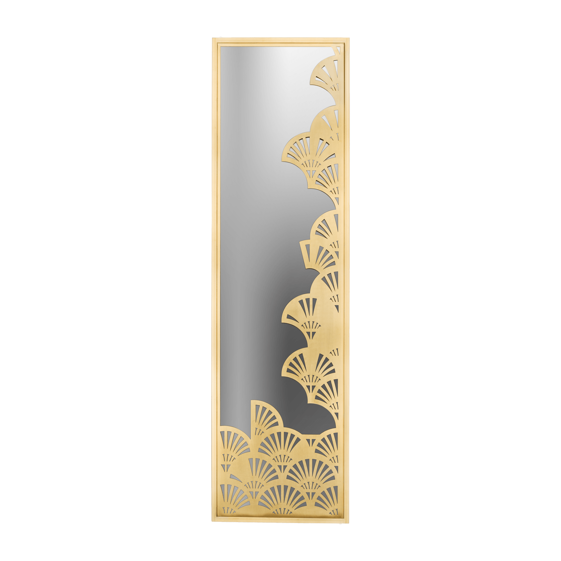 Add a sense of space to a room or hallway with our statement mirror with a carved lotus accent. The metal’s polished surface adds sophistication to your place, and its innovative Pharaonic-inspired design adds a decorative, pleasing element. A must-have accessory! Available in two brass shades and stainless steel.