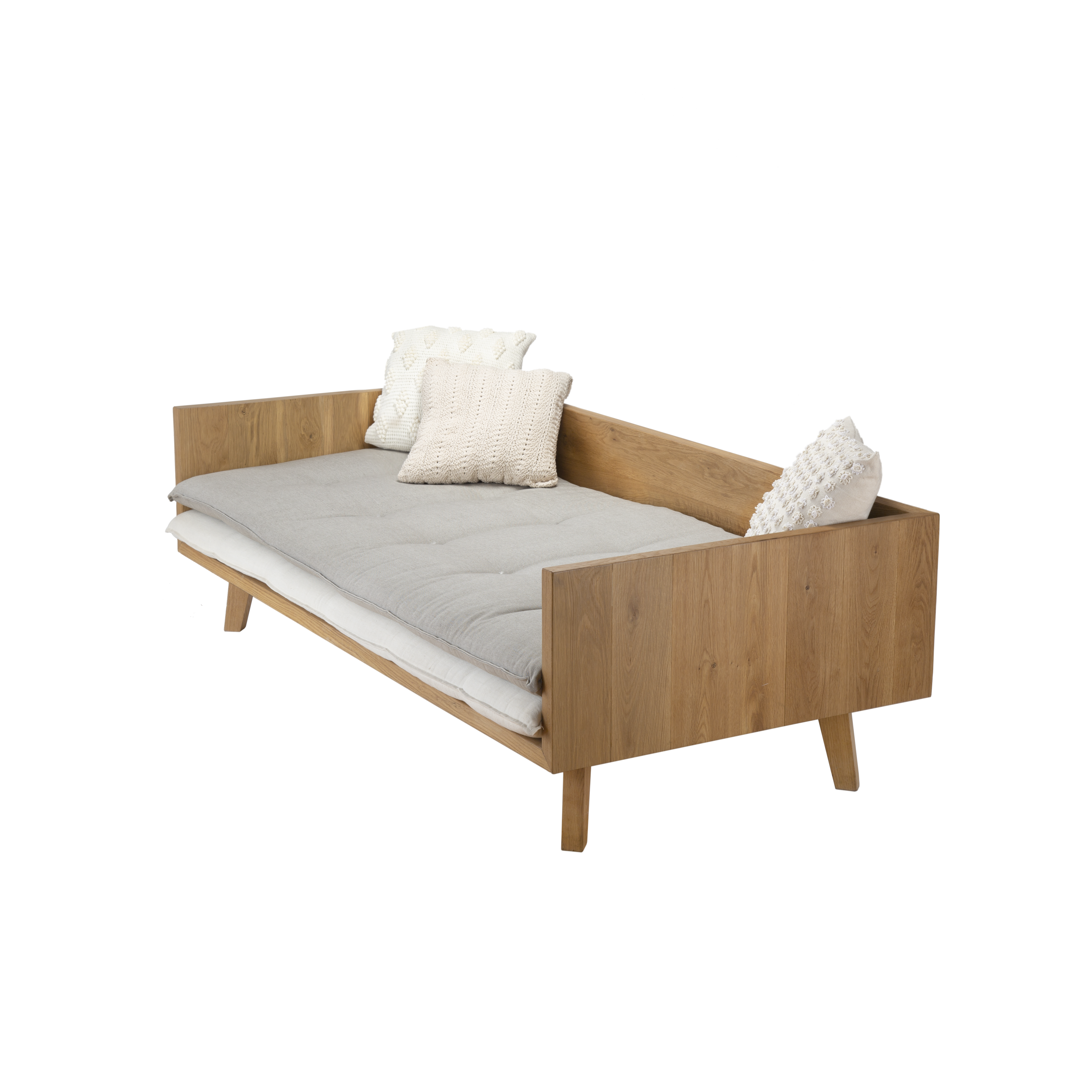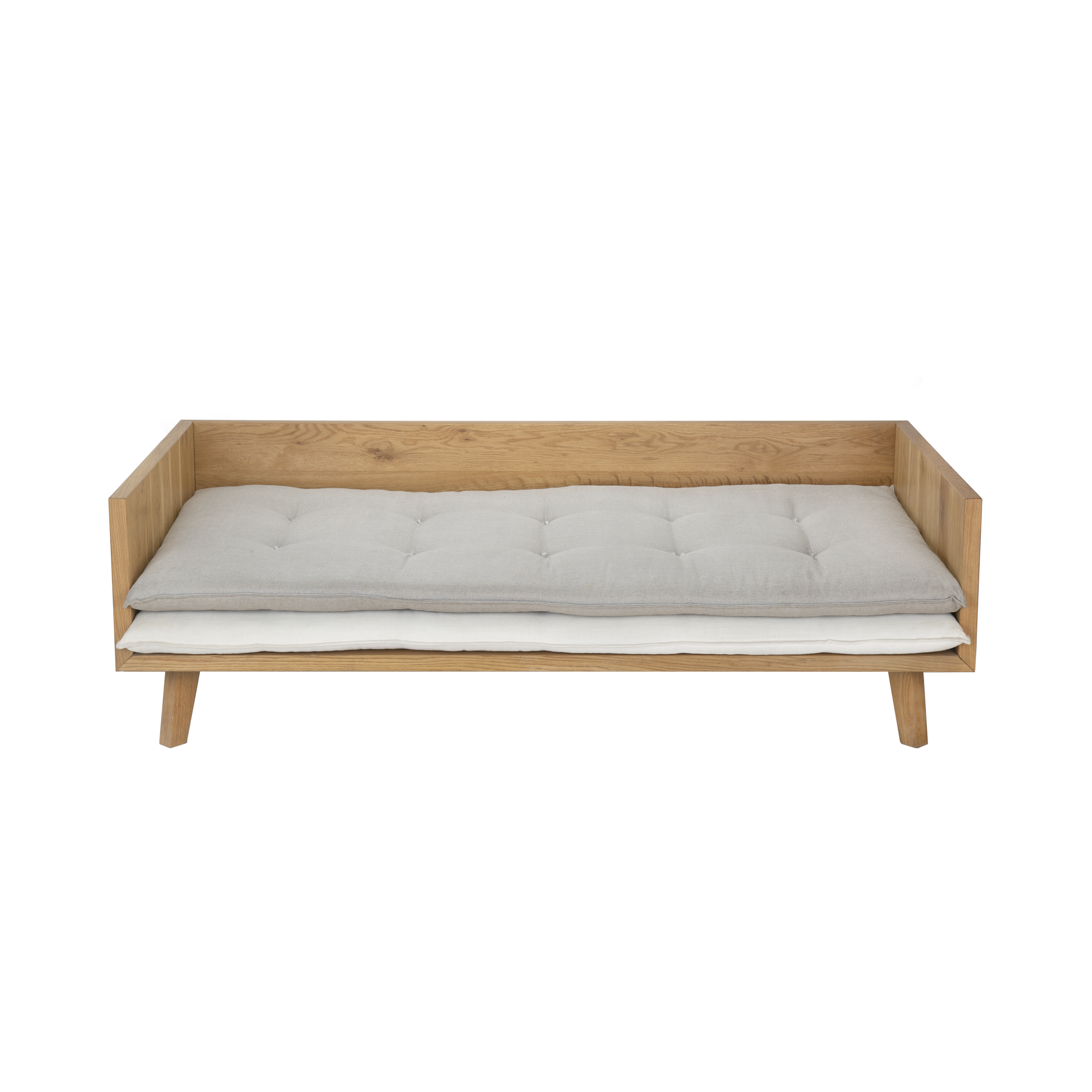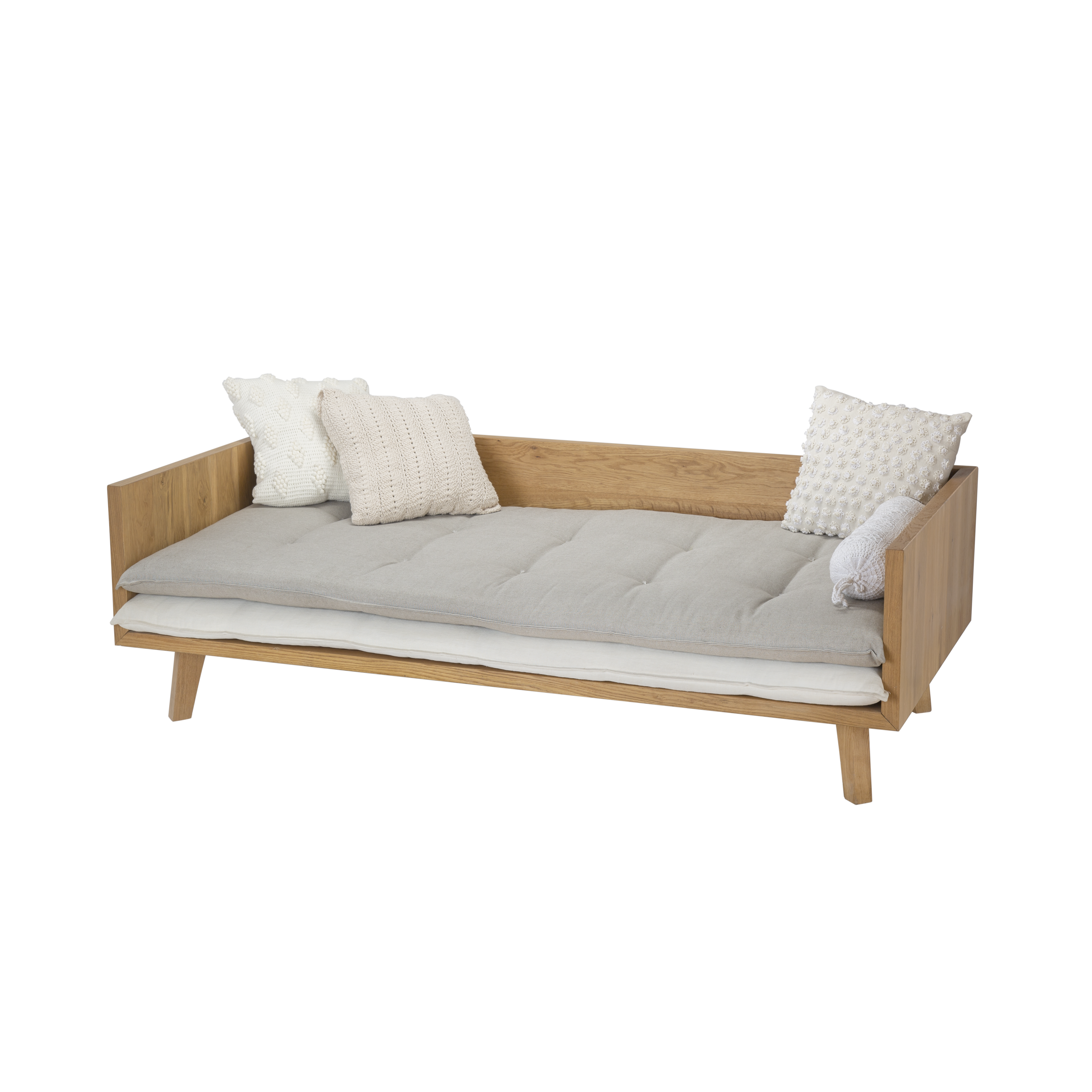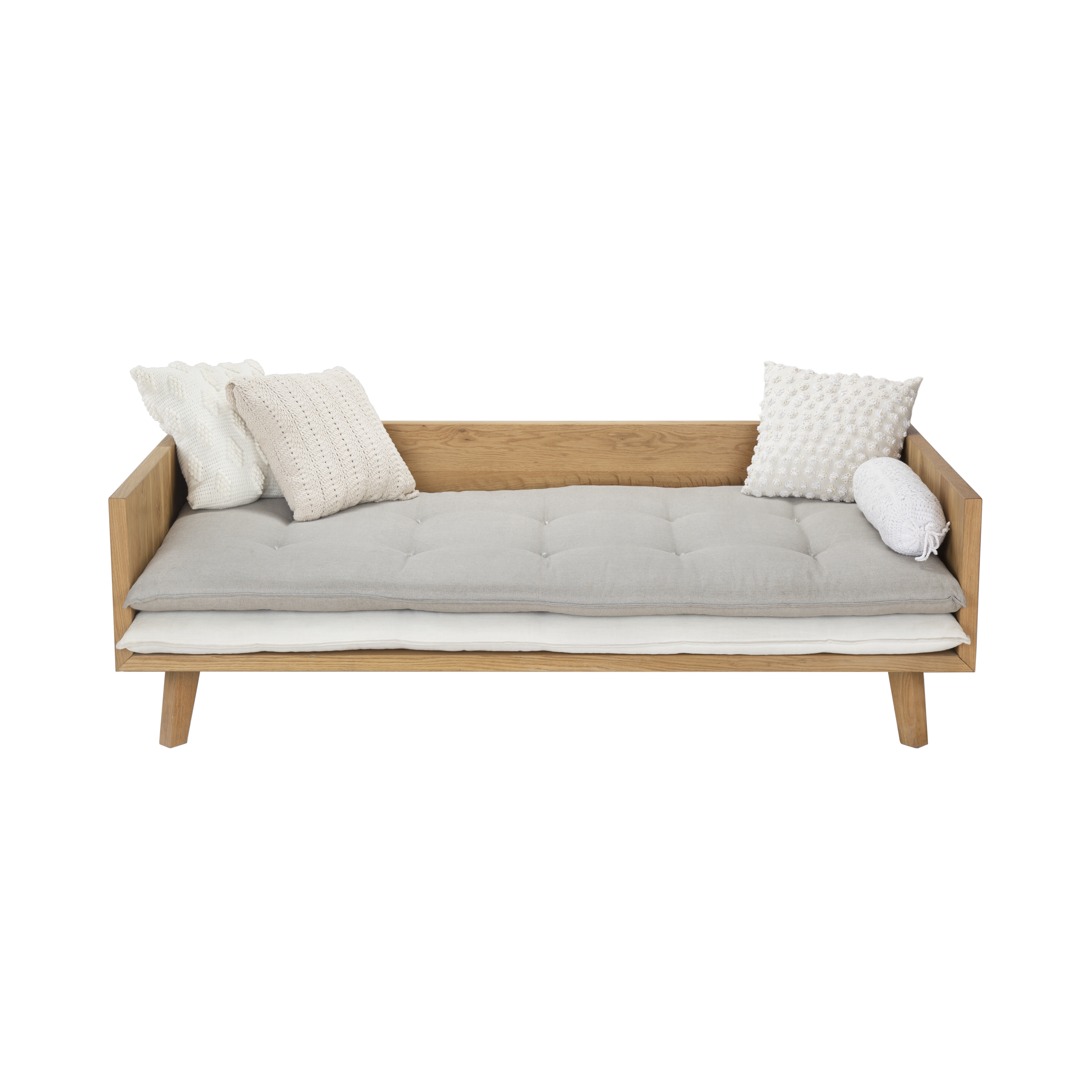 A classic outdoor sofa that will never go out of fashion. Available in a variety of sizes and as a chaise longue and ottoman, this modular selection can come together in multiple ways. It is made from high-quality oil-treated oak wood and comes with double cushions for an additional delicate detail.