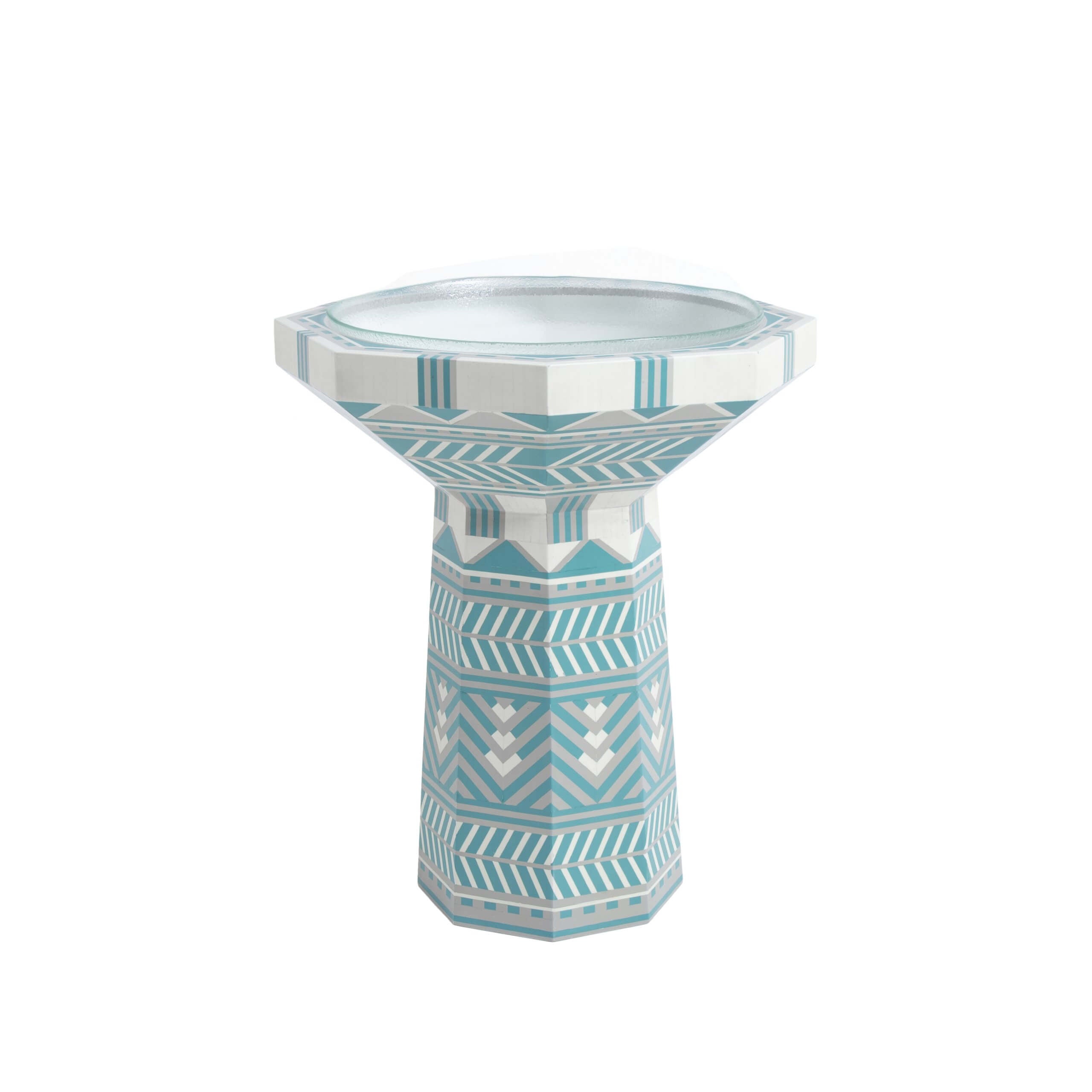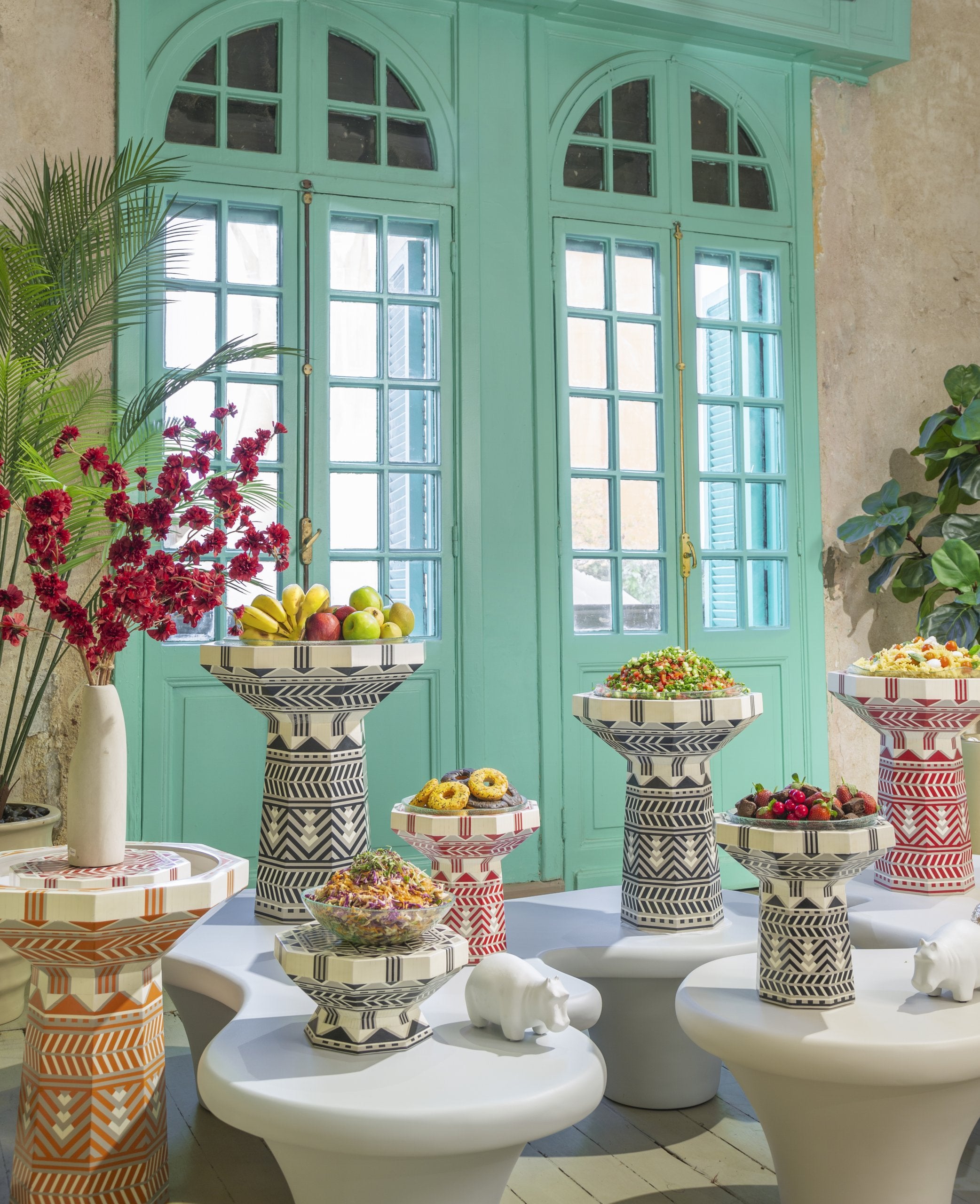 This is how feasts are made! Hosting is not just about the food, but the joy, warmth, scents, colors, and overall presentation of your love for the people you want to share those moments with. The Gala hosting set is all handmade of custom-colored acrylic. It is truly a labor of love and passion. The hand-blown glass platters are food-safe and can be used to serve food straight into them, or for fruits, flowers, and candles. They come in four different sizes and five colors that can be mixed and matched for a colorful, fun experience, or used separately for a more subtle and elegant gathering. The larger size can also be used as a side table.