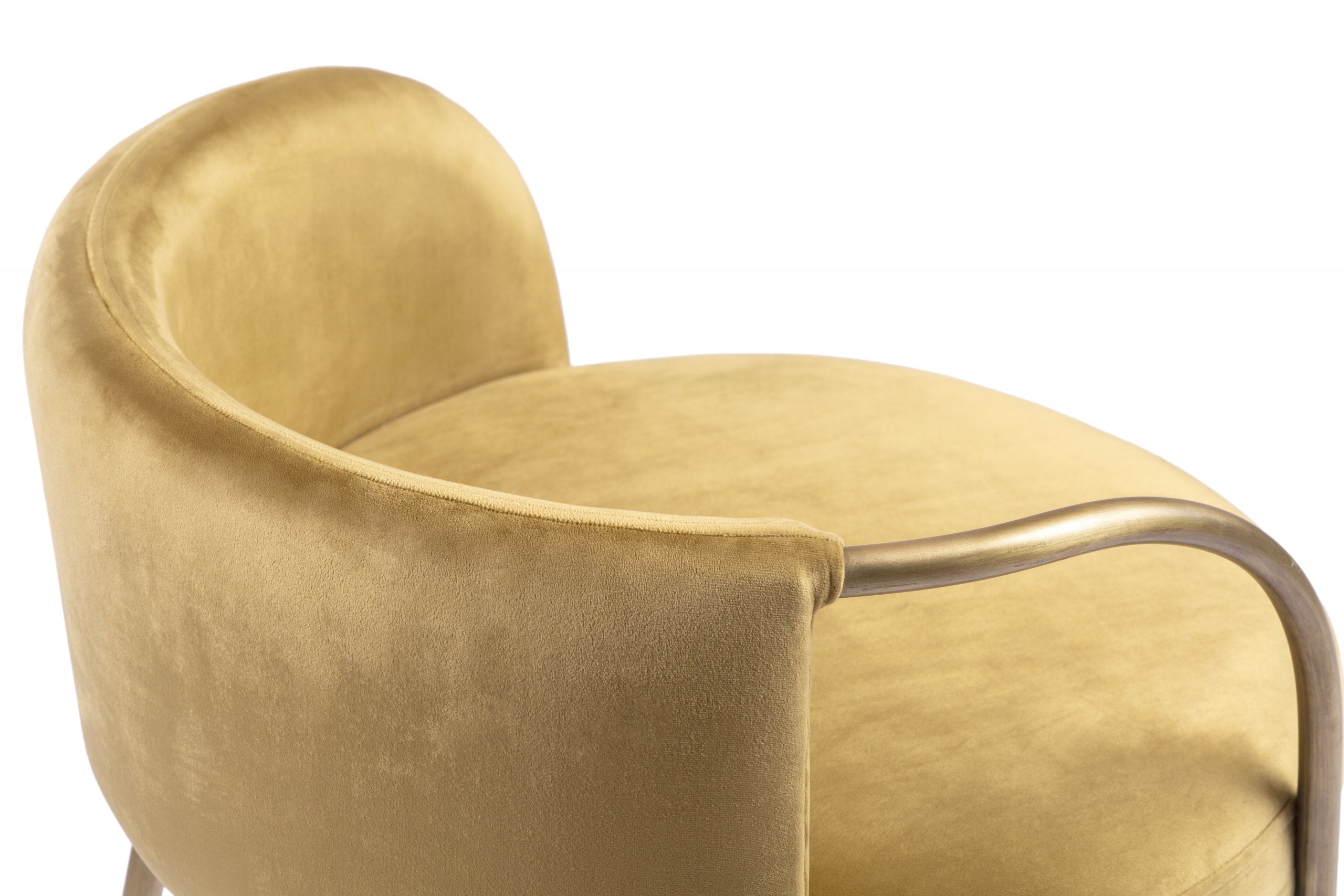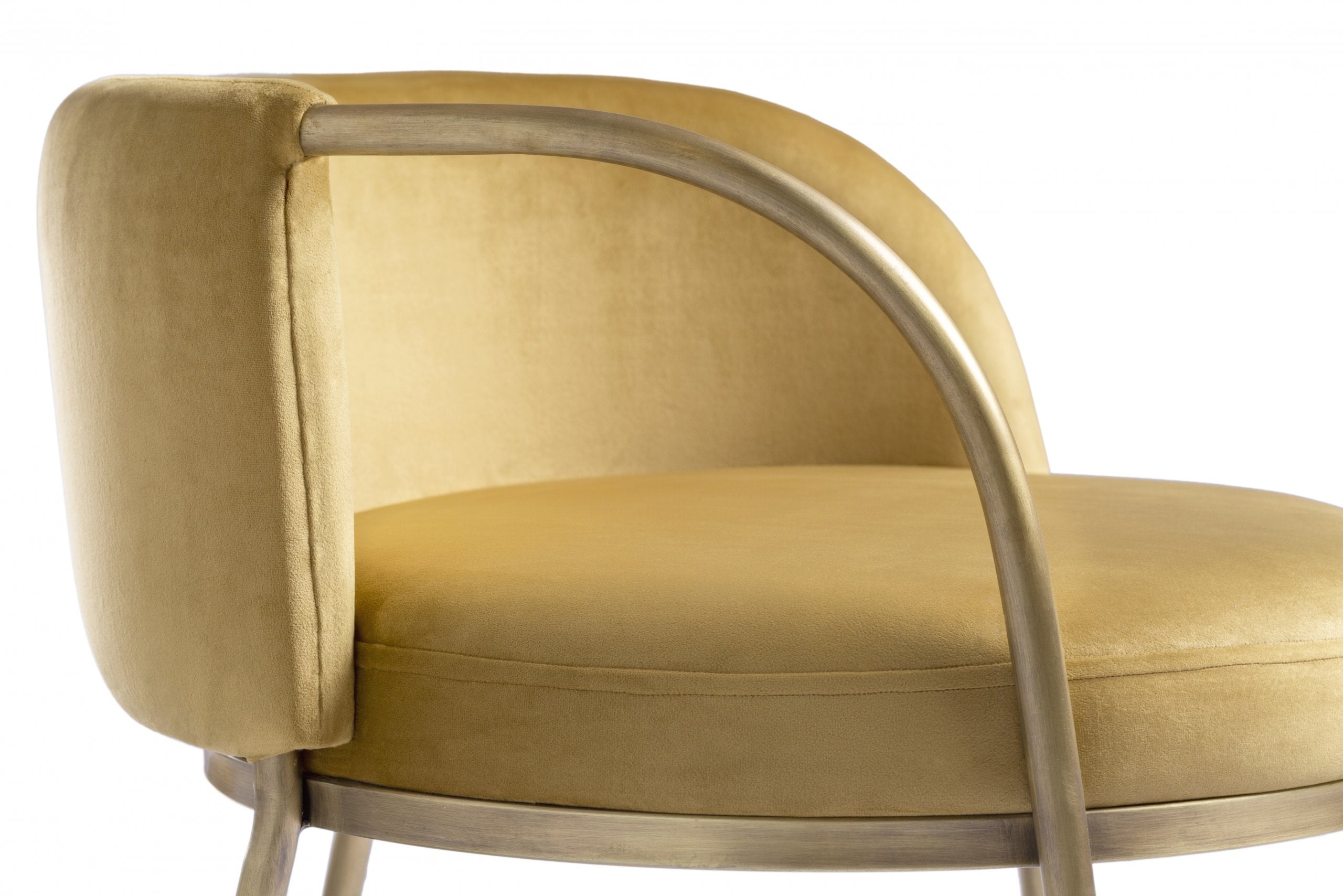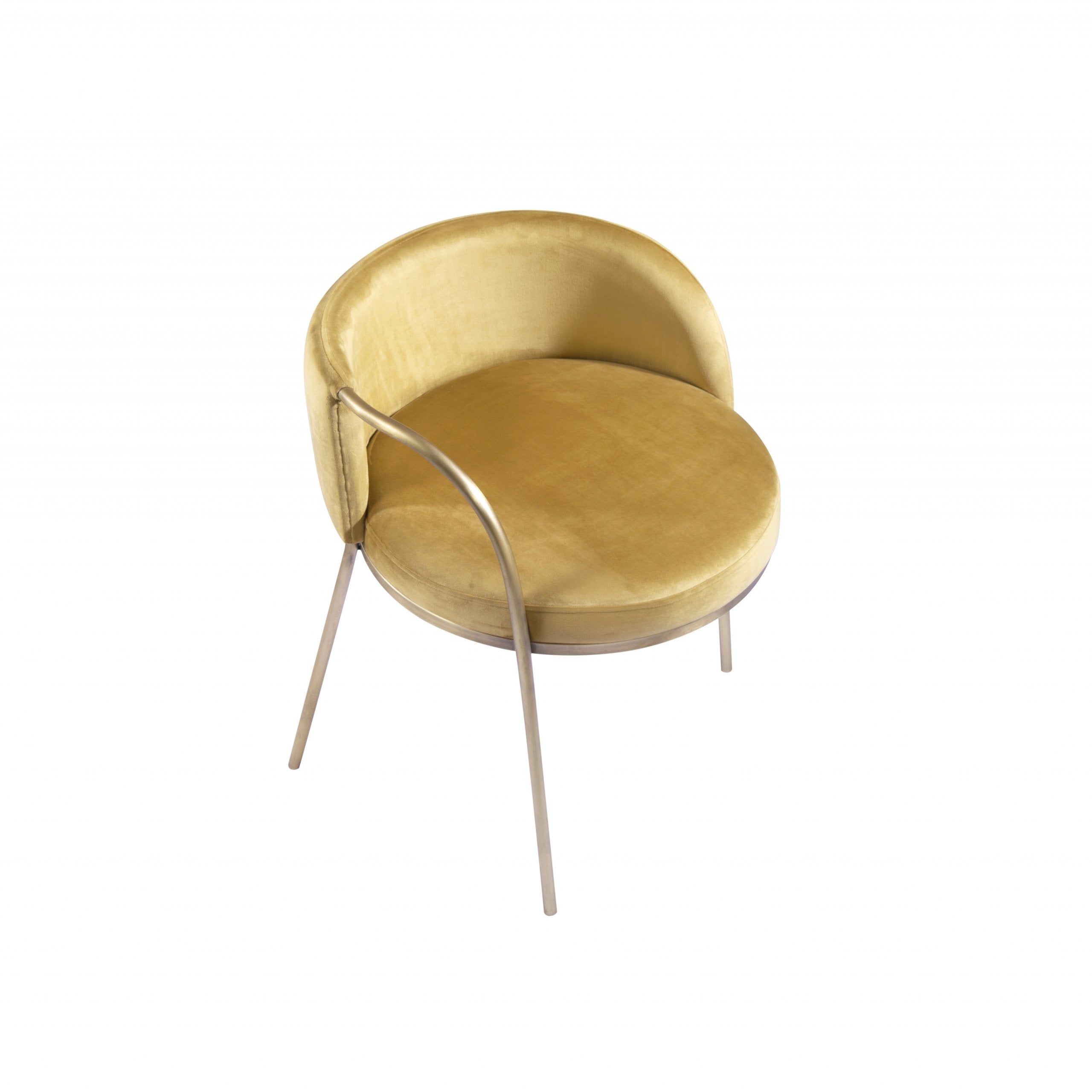 These dreamy dining chair sets are inspired by the waning of the moon. The brilliant one-arm bare electrostatic stainless design resembles the moonrise, when the upper limb of the moon appears over the horizon. Garnished with luxurious golden velvet upholstery that radiates a warm, alluring glow. Together, the chair set illustrates the moon cycle from moonrise to moonset.