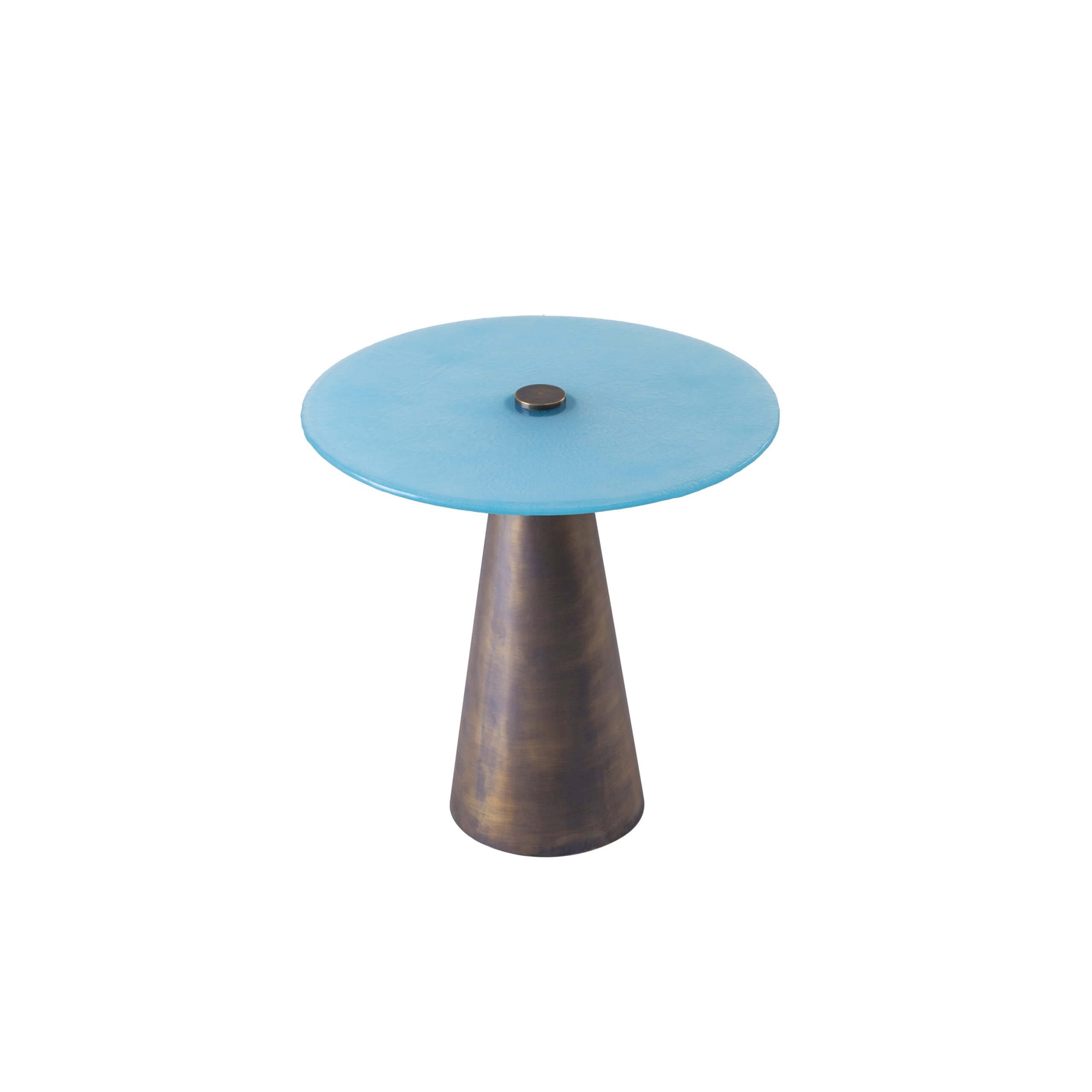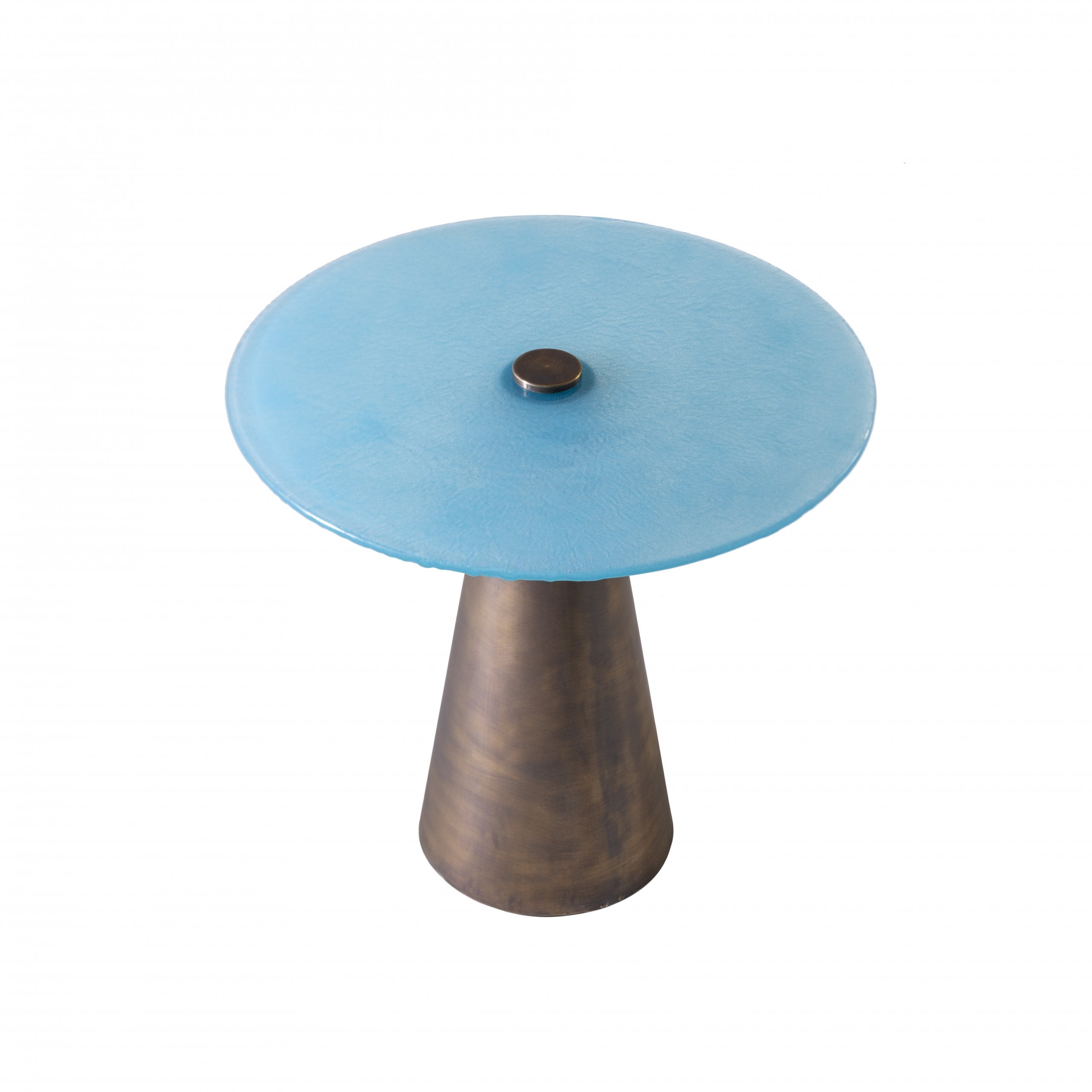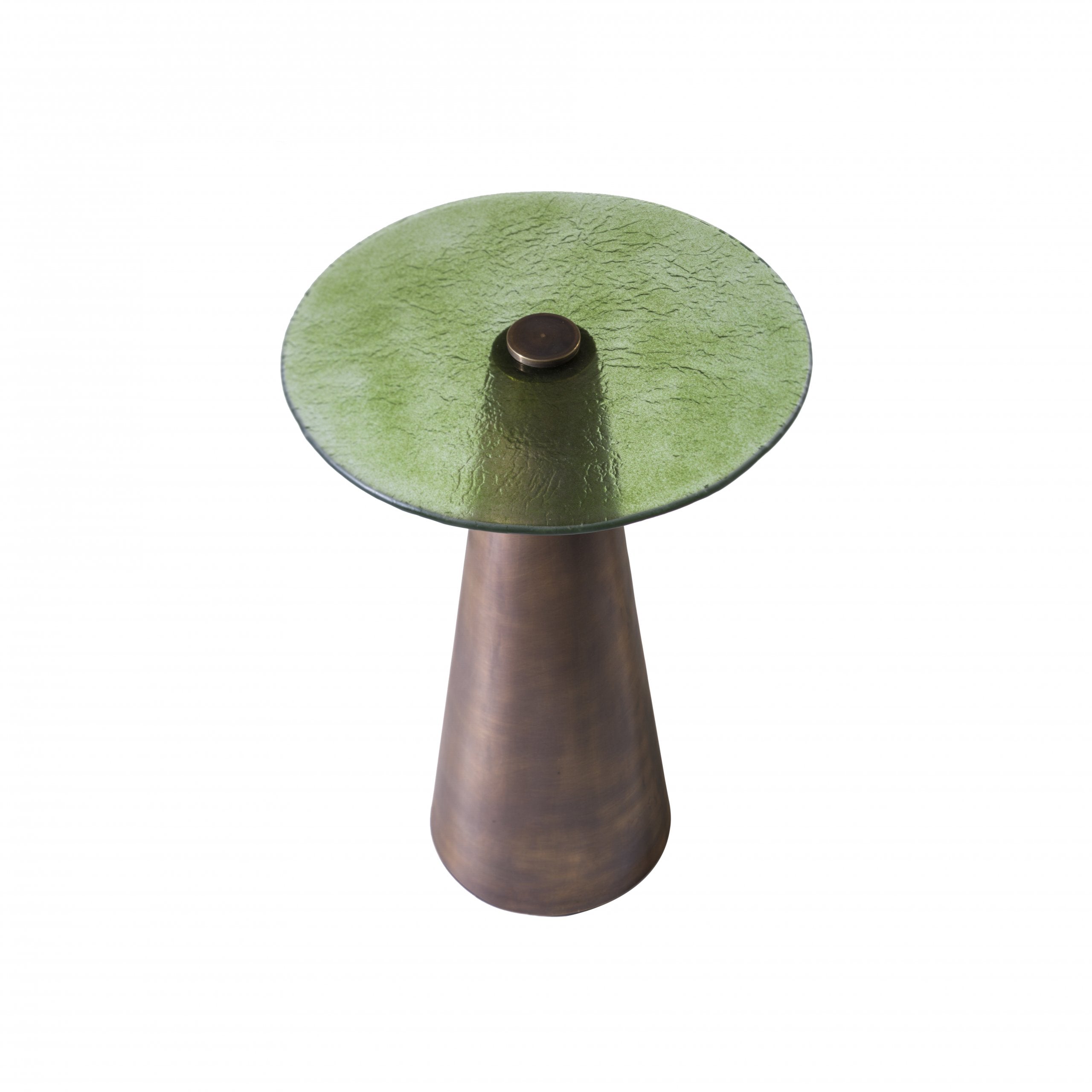 Fun, elegant, and versatile. This duo made of a brass base and hand-blown craft glass is a joy to look at. The turquoise–apple green mix is an all-time classic, but we're also happy to customize the glass color to fit your space.