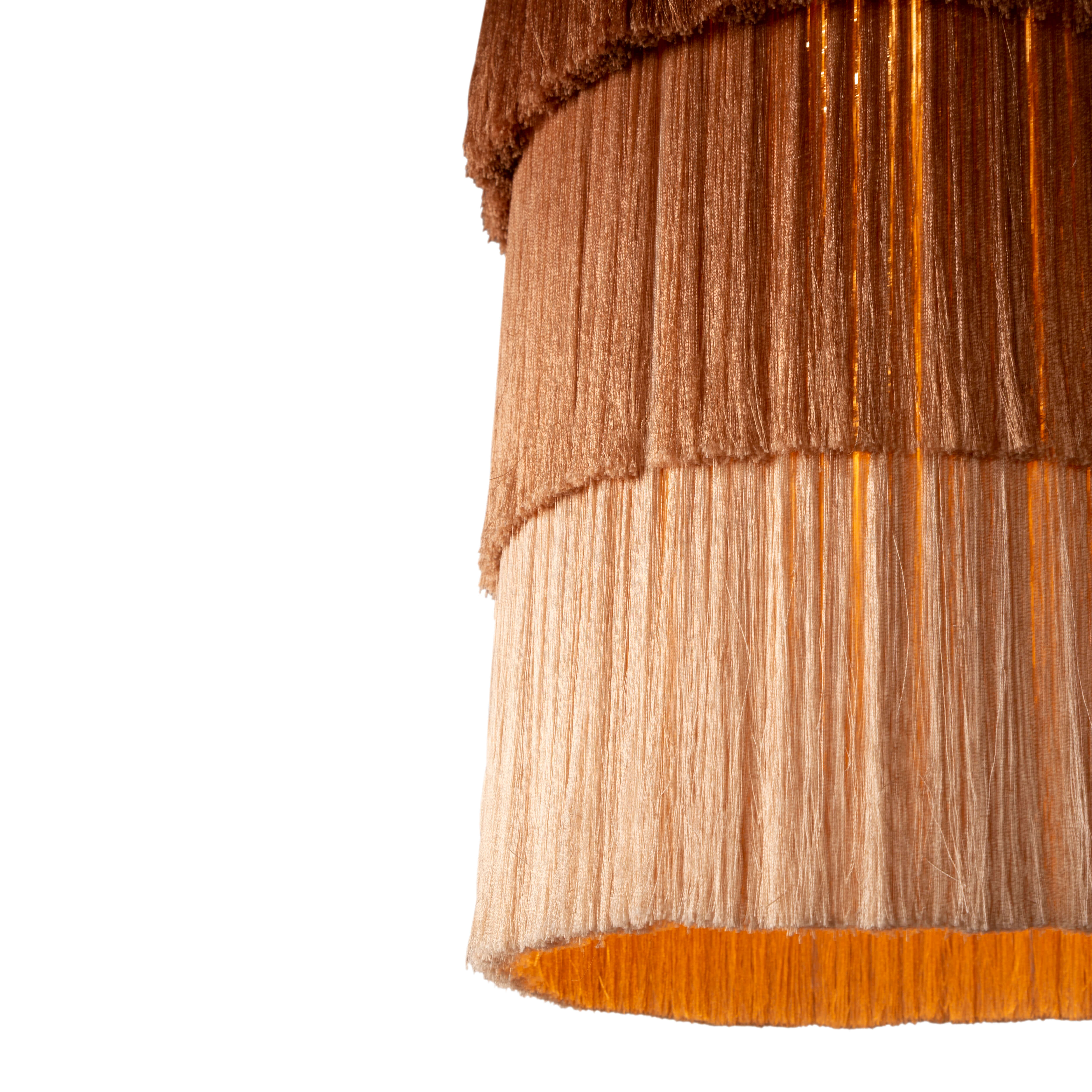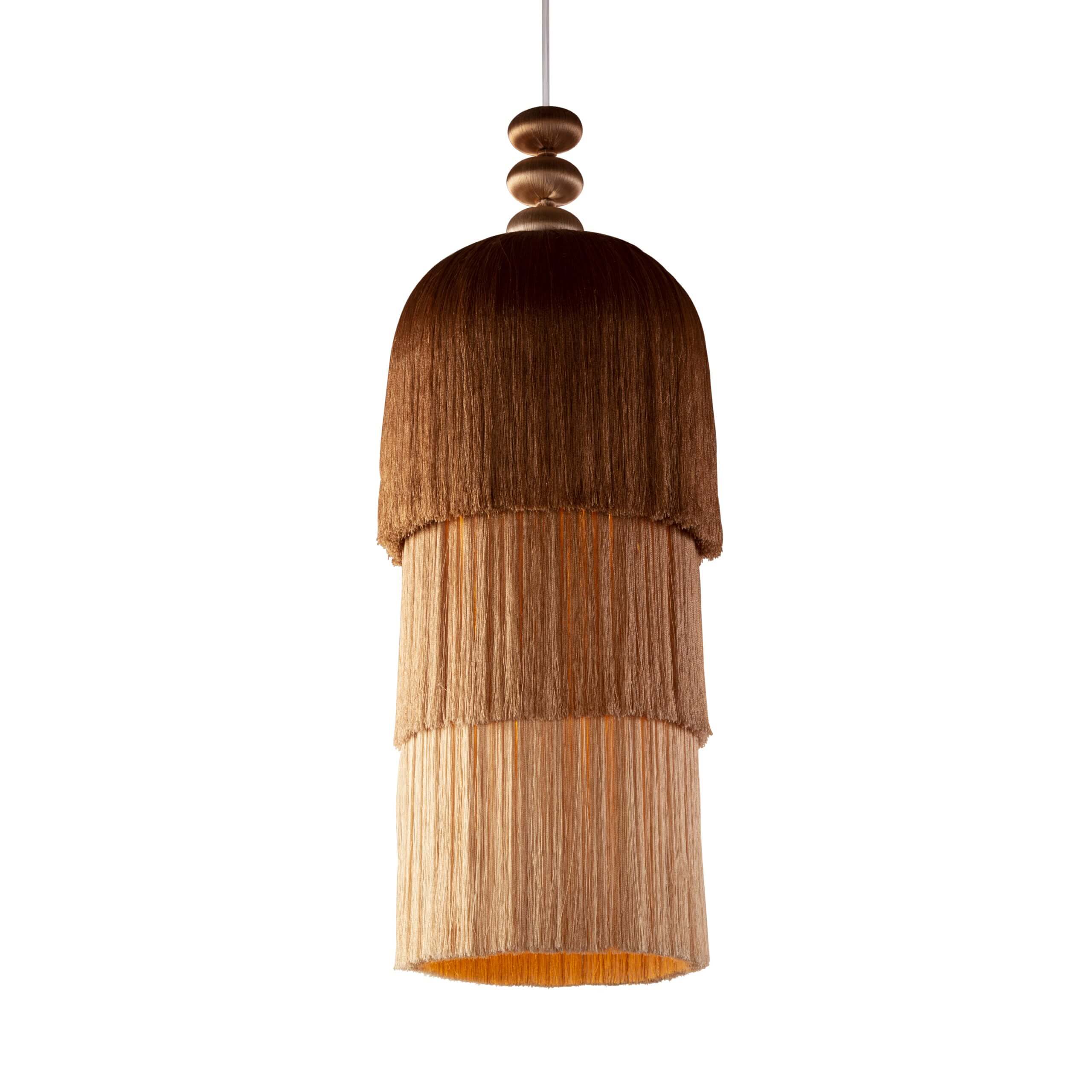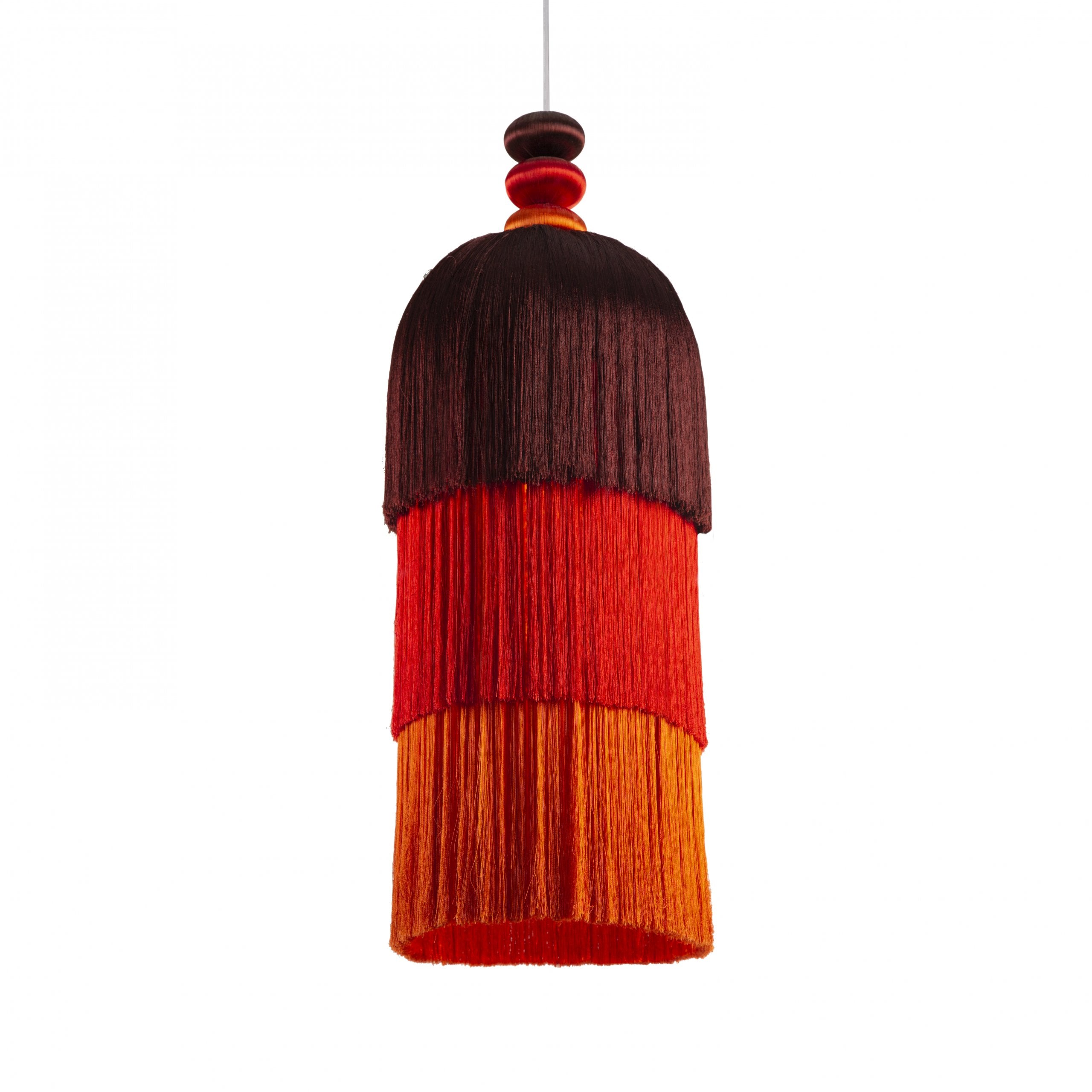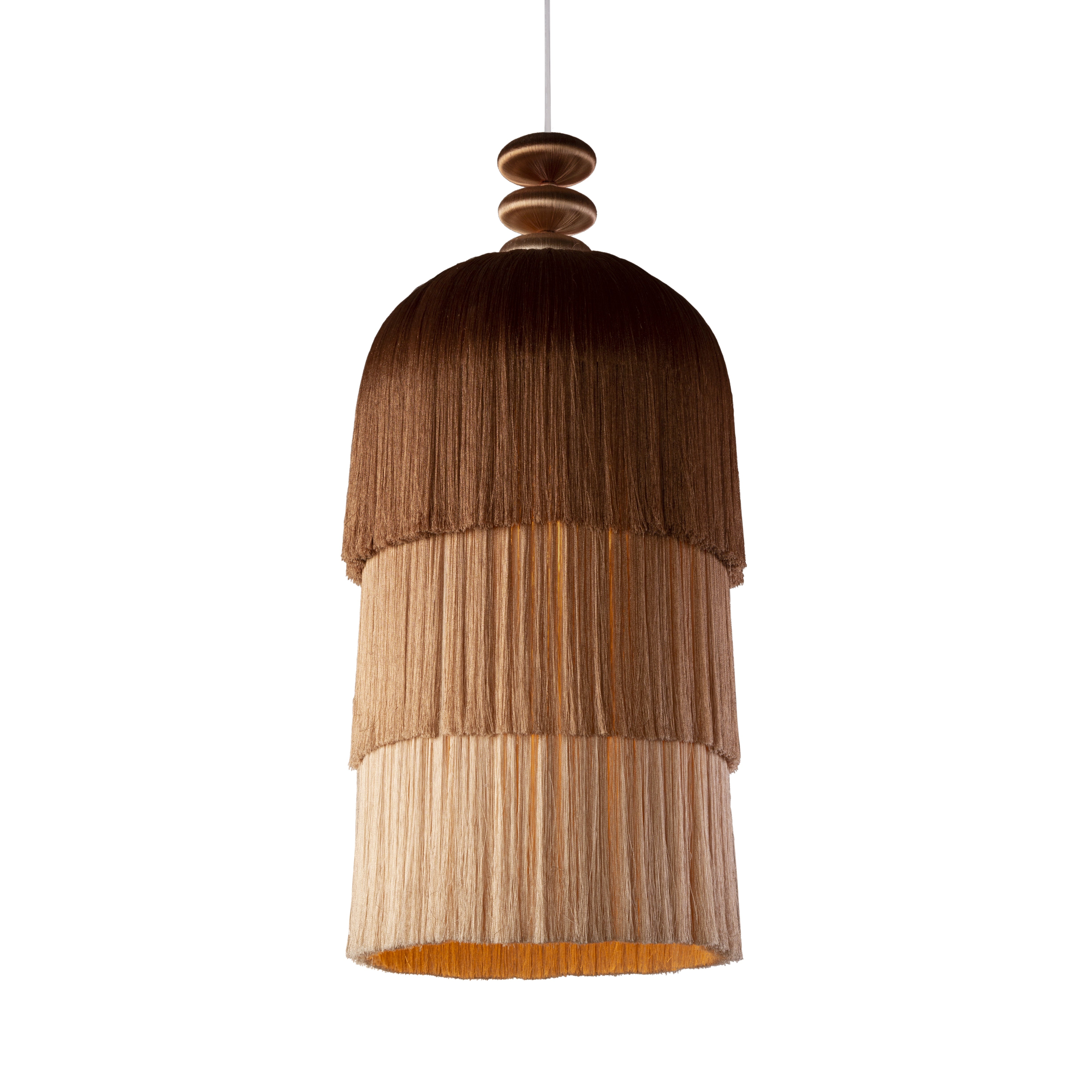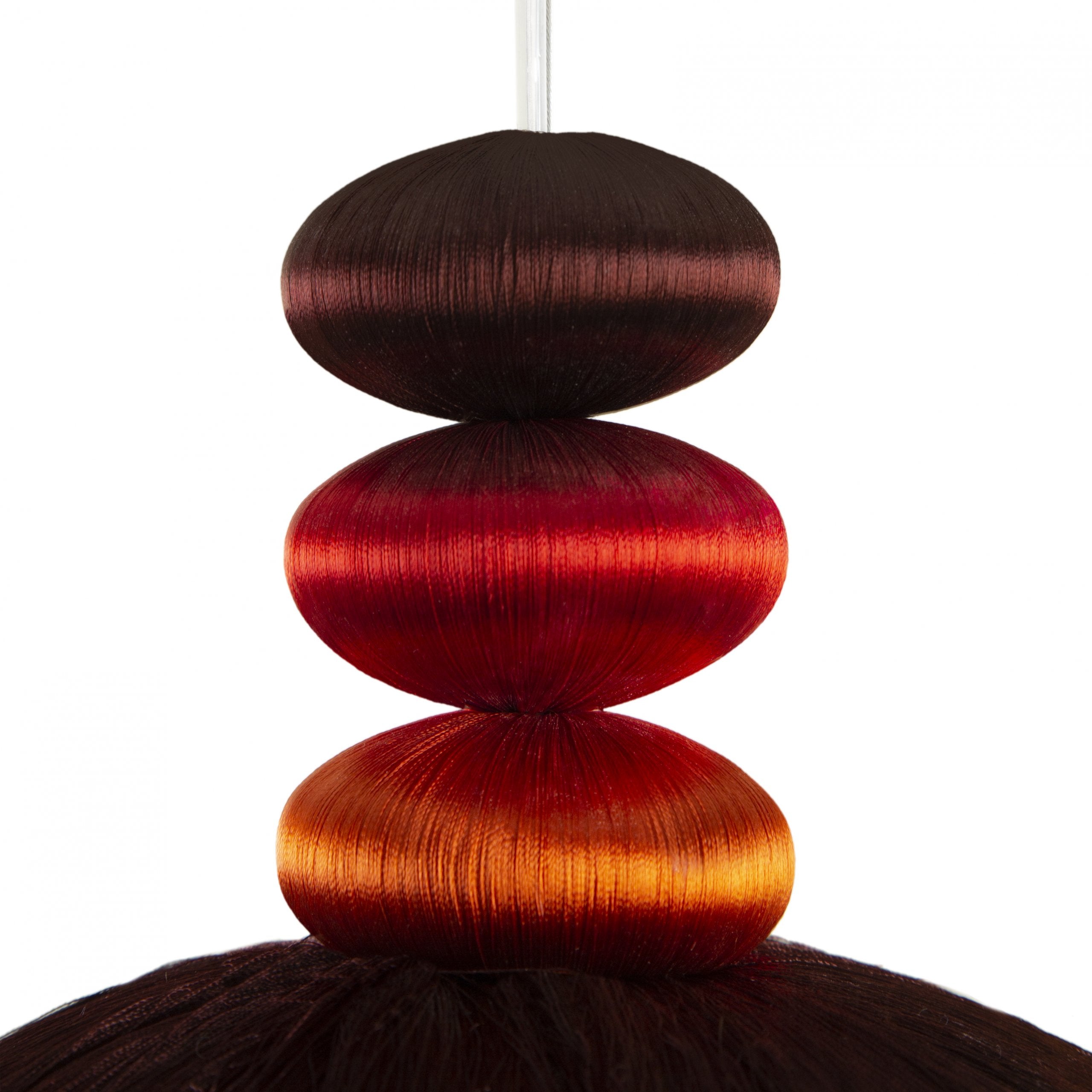 Lighting life would be dull without light, color, and movement. With her debut lighting design, Shewekar brings back the traditional craft of passementerie and adds her playful, colorful, and delicate aesthetic. The result is a beautiful piece that can be used alone or in any combination of colors, sizes, and numbers.